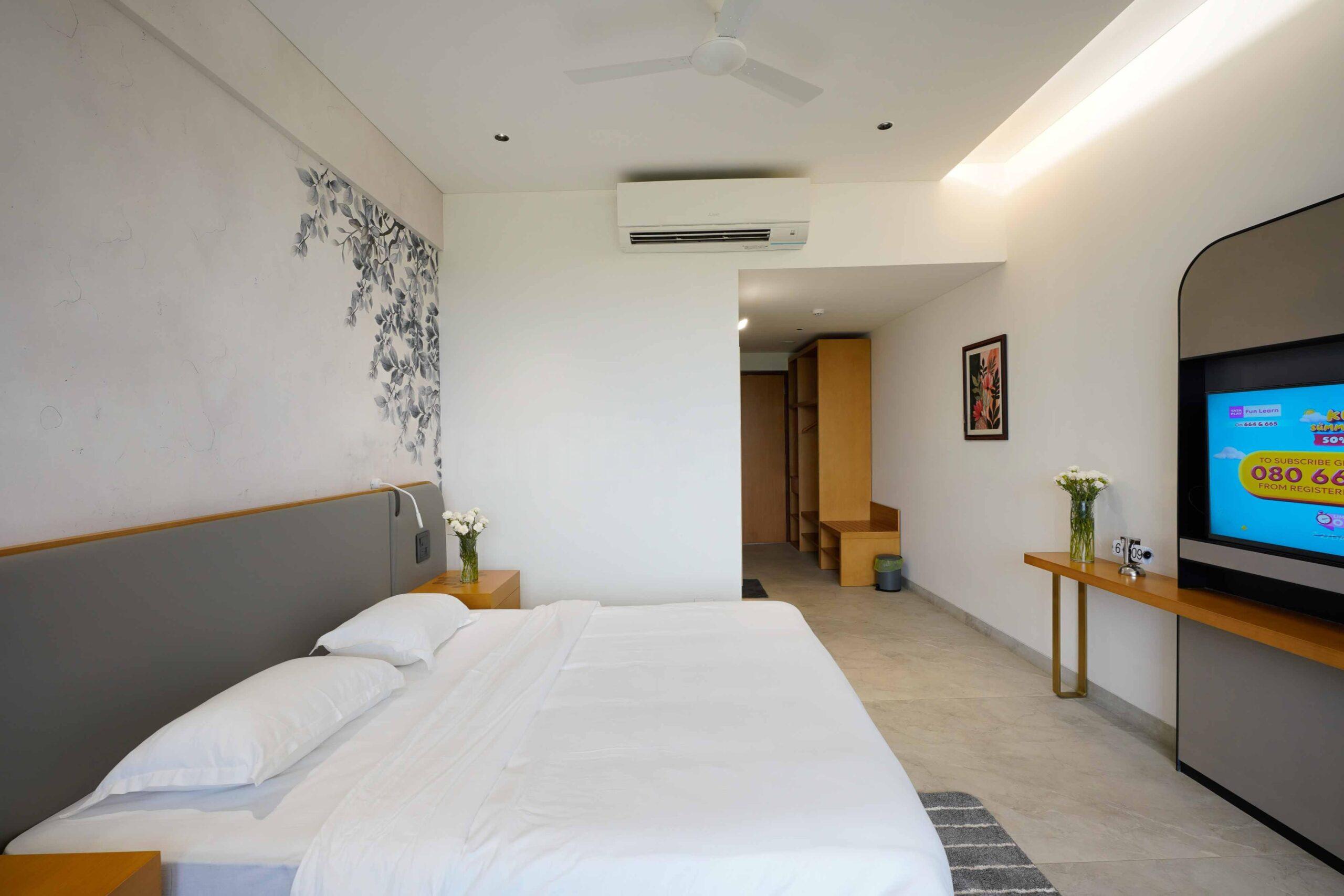 Every room has neatly arranged fixtures – closet, table, and drawer, to allow you enough space to place your belongings, relax and feel at home.